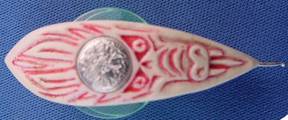 The resin shuttles can be scrimshawed (needle and/or knife etching). The following are examples and exact replication may not be available. Contact Randy for design considerations.